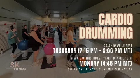 Adding in the New Time for Cardio Drumming: Starting April 13th, join us Mondays at 4:45 PM.